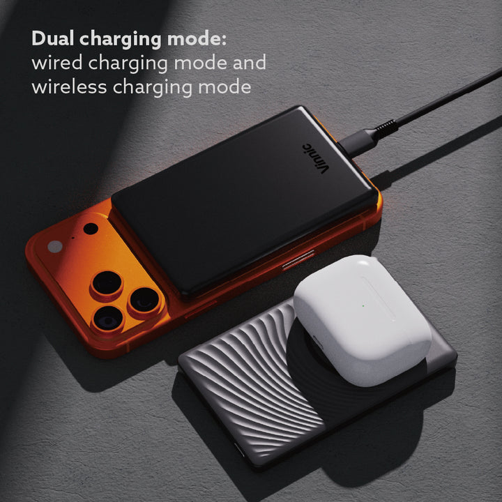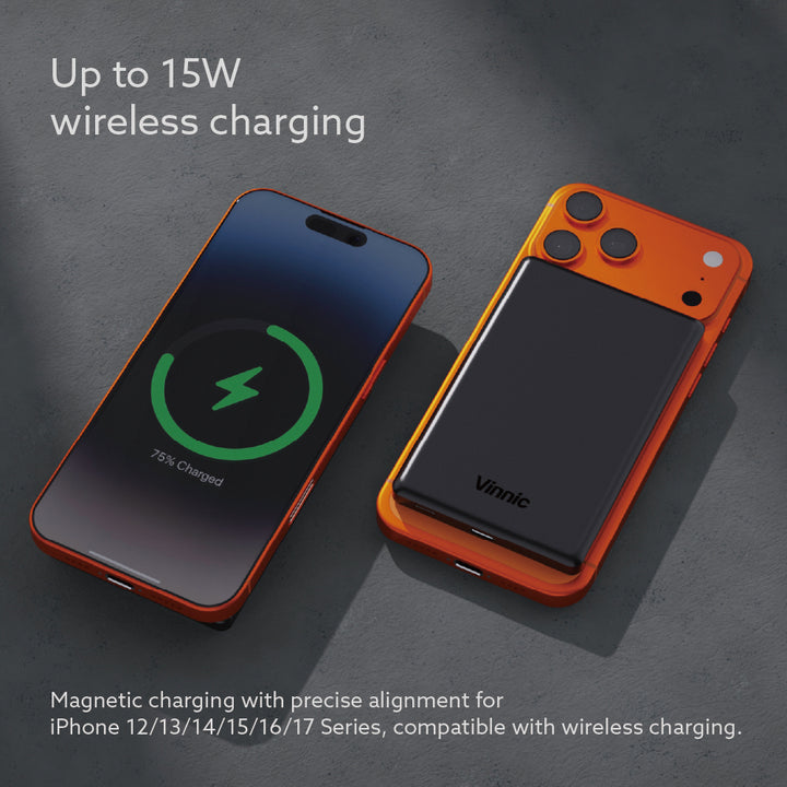 Experience the convenience of wireless charging with the Vinnic Power Cardinal Peak 2 Magnetic Wireless Powerbank. With a robust battery capacity of 5,000mAh, this powerbank is designed to keep your devices charged effortlessly, whether you're at home or on the go.